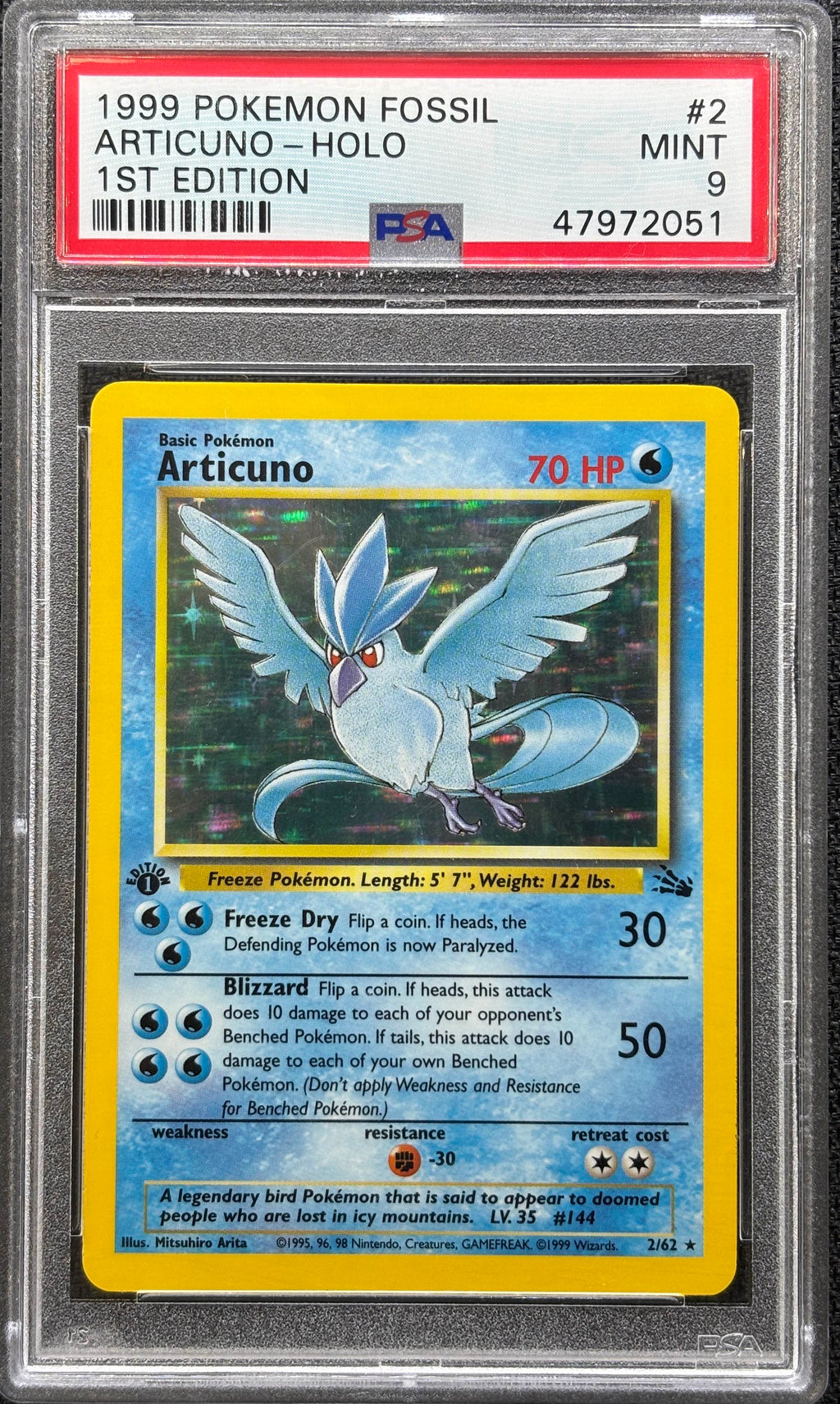 1999 POKEMON FOSSIL #2 ARTICUNO-HOLO 1ST EDITION PSA 9 - 051
