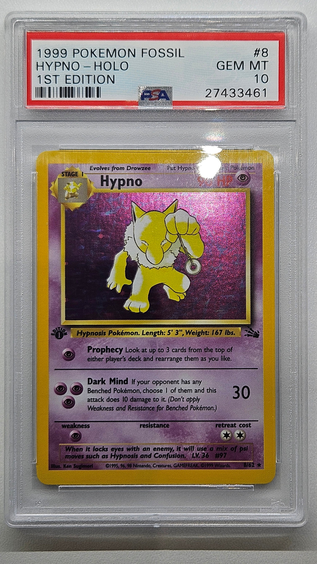 1999 POKEMON FOSSIL #8 HYPNO-HOLO 1ST EDITION PSA 10 - 461