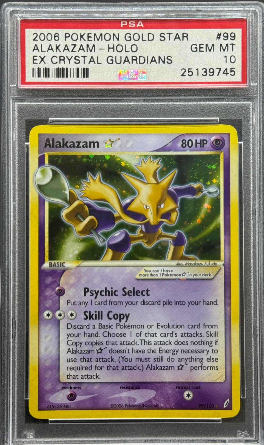 2006 POKEMON EX CRYSTAL GUARDIANS #99 ALAKAZAM-HOLO EX CRYSTAL GUARDIANS PSA 10 - 745
