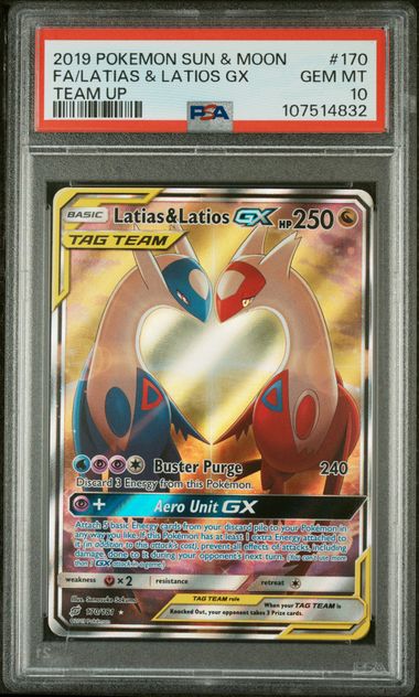 2019 POKEMON SUN & MOON TEAM UP #170 FA/LATIAS & LATIOS GX TEAM UP PSA 10 - 832
