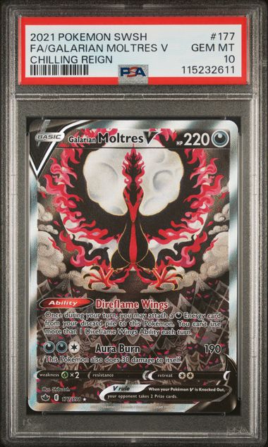 2021 POKEMON SWORD & SHIELD CHILLING REIGN #177 FA/GALARIAN MOLTRES V CHILLING REIGN PSA 10 - 611