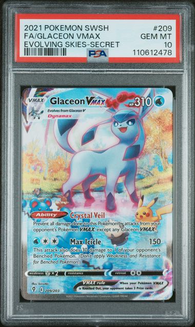 2021 POKEMON SWORD & SHIELD EVOLVING SKIES #209 FA/GLACEON VMAX EVOLVING SKIES-SECRET PSA 10 - 478