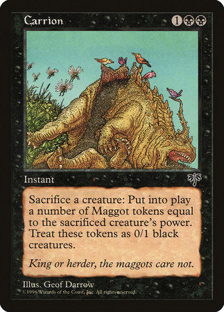 As an additional cost to cast this spell, sacrifice a creature. Create X 0/1 black Insect creature tokens, where X is the sacrificed creature's power.
